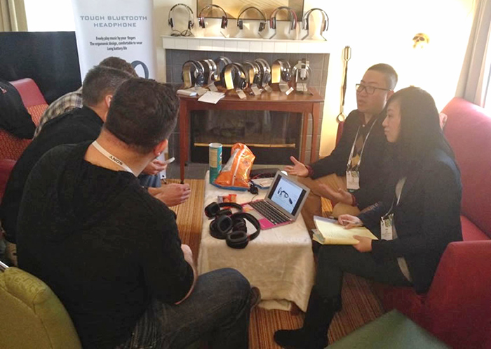 每年的CES对于科技、电子厂商来说都是一场盛宴,很多重量级新品都会在CES上发布。今年在美国拉斯维加斯举行的CES2014上,我司就举行了盛大的客户见面会,发布了最新推出的骨传导,智能可穿戴设备,触摸蓝牙等多款新品,成为展示中众人瞩目的焦点。