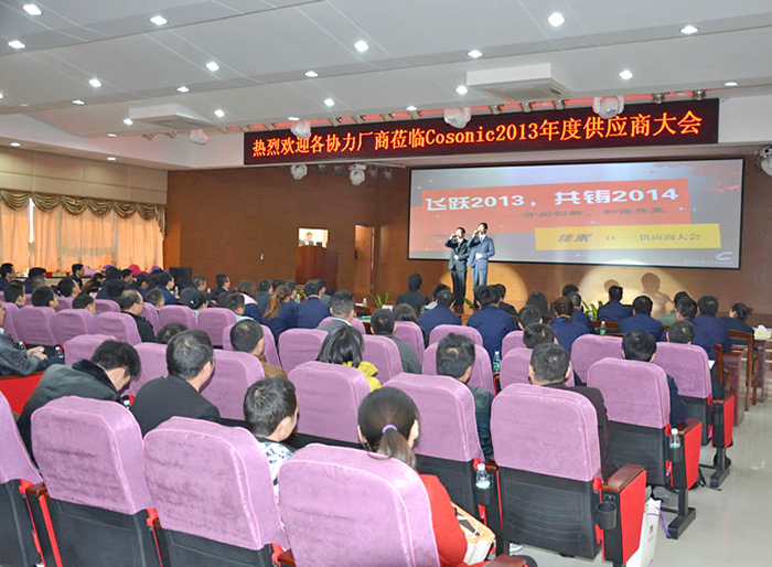 2013年12月28日以“飞跃2013,共铸2014,开拓创新,和谐共赢”为主题的供应商大会在松湖华科正式落下帷幕。z6com·尊龙公司总裁:严文华先生,z6com·尊龙公司总经理:肖伟群先生,z6com·尊龙公司副总经理:陈亮先生、符德全先生、刘迪先生,各分厂领导、采购人员和品质部门,以及各供应商参加了本次大会。
